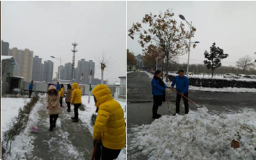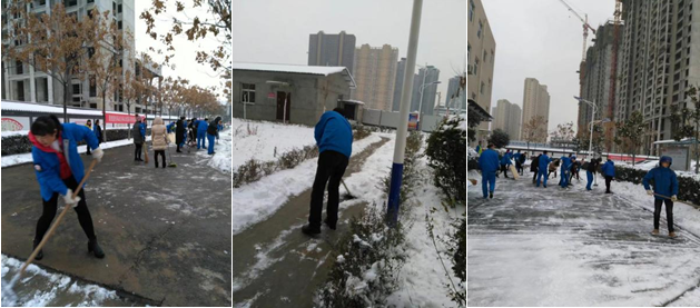 雖然出行這么難,但我們熱力公司的全體職工熱愛企業愛崗敬業精神還是令人佩服的,這不,全公司今天無一人請假,都在公司大院集合掃雪。超大的院子被白雪覆蓋嚴實了,同志們手拿鐵锨、掃帚、鐵耙,鏟的鏟、推的推、掃的掃,刨的刨,通力合作,各部門相互協助,用了半天時間就使公司院子條條道路暢通無阻,積雪全部倒入苗木下做了水肥。這次應急隊隊員們表現突出,肯實干出力,女同志更是巾幗不讓須眉,而我們的老大哥楊經理更是讓人敬佩,他挽起袖子走在鏟雪隊伍前頭,身先士卒,埋頭苦干,在他帶領下,同志們完成了各條小道的清掃工作,美麗的熱力大院頓時進出便捷,安全順暢了。